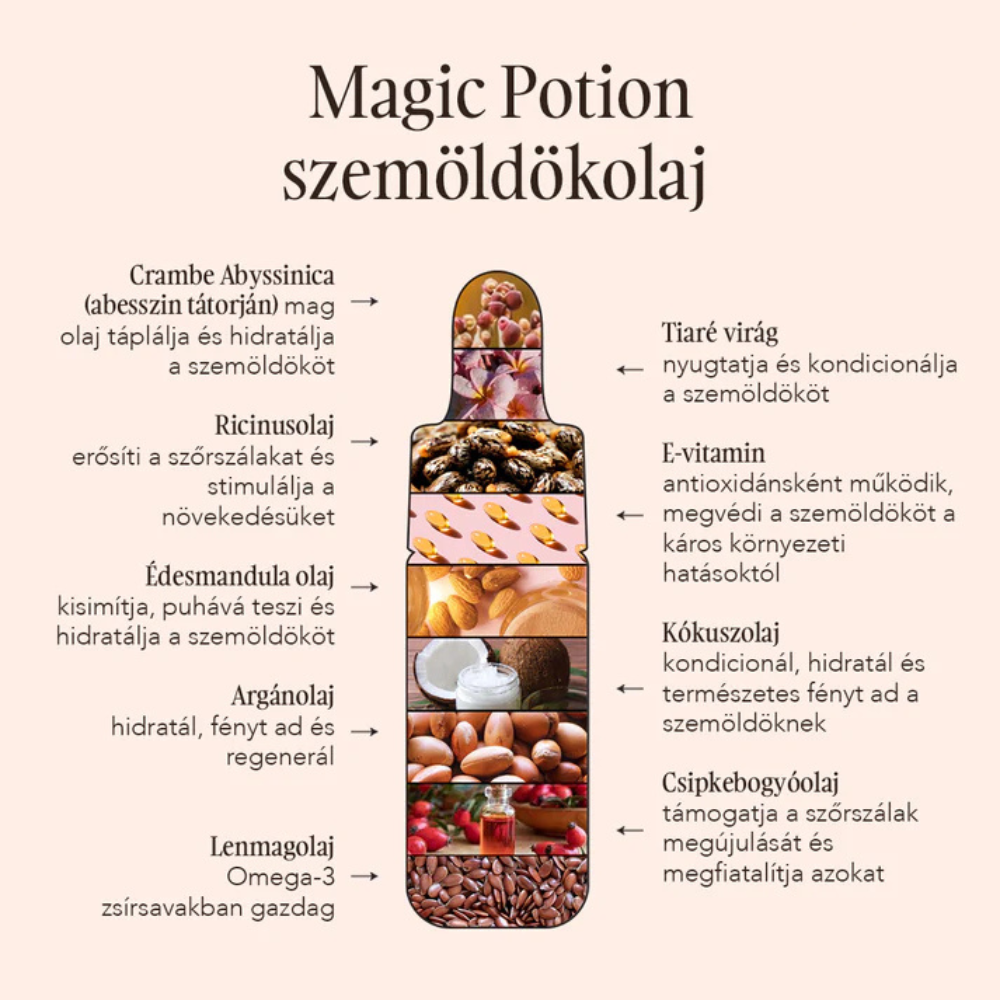 Hadd mutassunk be egy erőteljes és 100%-ban természetes készítményt a szemöldök hidratálására és megfiatalítására. Ez az egyedülálló ápolóolaj tápláló lenmag-, argán-, csipkebogyó- és abesszin tátorján olajok, valamint az esszenciális zsírsavakban gazdag édesmandula olaj keverékéből készült. Ezek az összetevők jelentősen befolyásolják a szőrszálak anyagcseréjét azáltal, hogy intenzív hidratálást, regenerációt, nyugtató tulajdonságokat, emellett védelmet biztosítanak a bőrnek a szemöldök laminálása után. A természetes keverék emellett csodát tesz a szemöldökszálak kiszáradásának és töredezettségének megelőzésében, miközben az E-vitamin segítségével erősíti a szőrszálakat, hatékonyan minimalizálva azok kihullását.